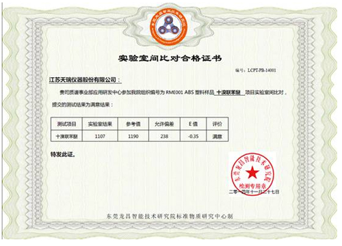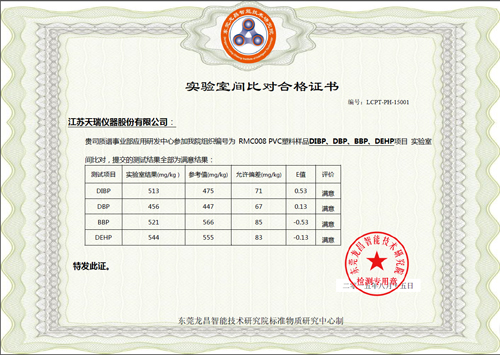 附:實驗室間比對合格證書