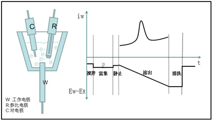 在一定的電位下,使待測金屬離子部分地還原成金屬并溶入微電極或析出于電極的表面,然后向電極施加反向電壓,使微電極上的金屬氧化而產(chǎn)生氧化電流,根據(jù)氧化過程的電流一電壓曲線進行分析的伏安法。 陽極溶出伏安法以其極低的成本與高靈敏度的特點、目前在歐美正取代傳統(tǒng)的原子吸收方法大量應(yīng)用于環(huán)境應(yīng)急監(jiān)測、自來水檢測、電鍍和表面處理行業(yè)廢水檢測、食品、制藥、醫(yī)院廢水監(jiān)測等方面。