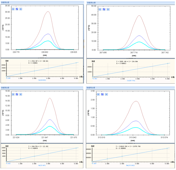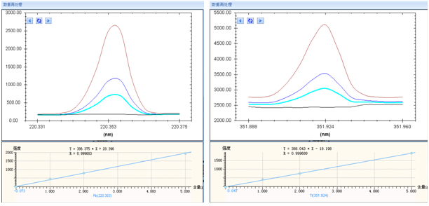 在 ICP-AES正常運行后,將樣品溶液通過進樣系統引入到電感耦合等離子體中,分析波長測定各元素的光譜強度。