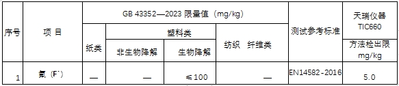 表2.氟(F-)限量值與檢出限一覽表
