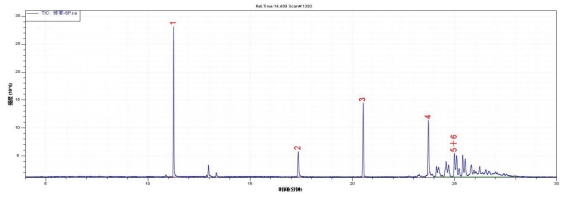 圖14. 6種鄰苯二甲酸酯標準物質總離子流色譜圖