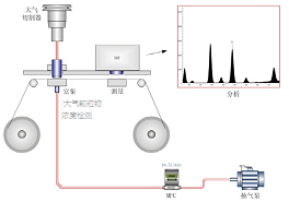 儀器以恒定的工況流量將空氣吸入顆粒物切割器中,以PM2.5為例,動力學直徑在2.5um附近及以下的顆粒污染物進入到儀器的富集系統中。經過一段時間的富集后,富集系統自動切換成β射線分析系統,利用β射線的衰減與顆粒物的質量濃度成指數的關系,對顆粒物的質量濃度進行分析。然后卷膜系統地將富集有空氣顆粒物的濾紙移動到X射線熒光分析系統,分別利用X射線熒光的能量和強度對顆粒物中的元素成分進行定性和定量的分析。