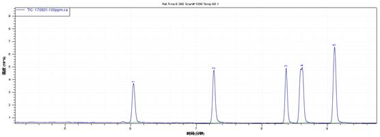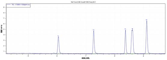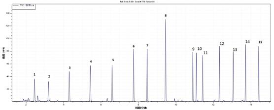 1.正己烷 2.苯 3.三氯乙烯 4.甲苯 5.辛烯 6.乙酸丁酯 7.乙苯 8.對(間)二甲苯 9.鄰二甲苯 10.苯乙烯 11.壬烷 12.異辛醇 13.十一烷 14.十四烷 15.十六烷