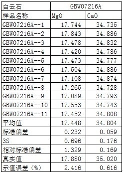 ④ .實際測試白云石國標樣GBW07216A的數據如下為